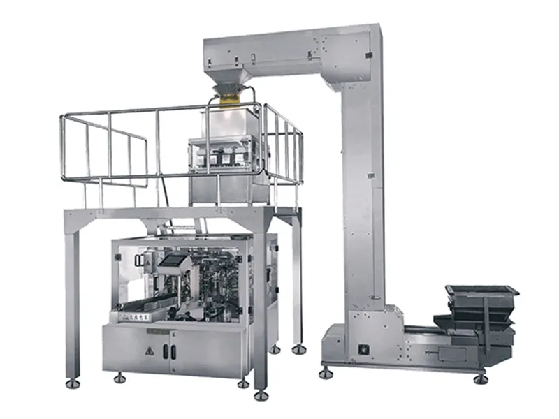 - Конфигурация: 8-головочный линейный весовой дозатор, рабочая платформа, Z-образный вертикальный транспортер